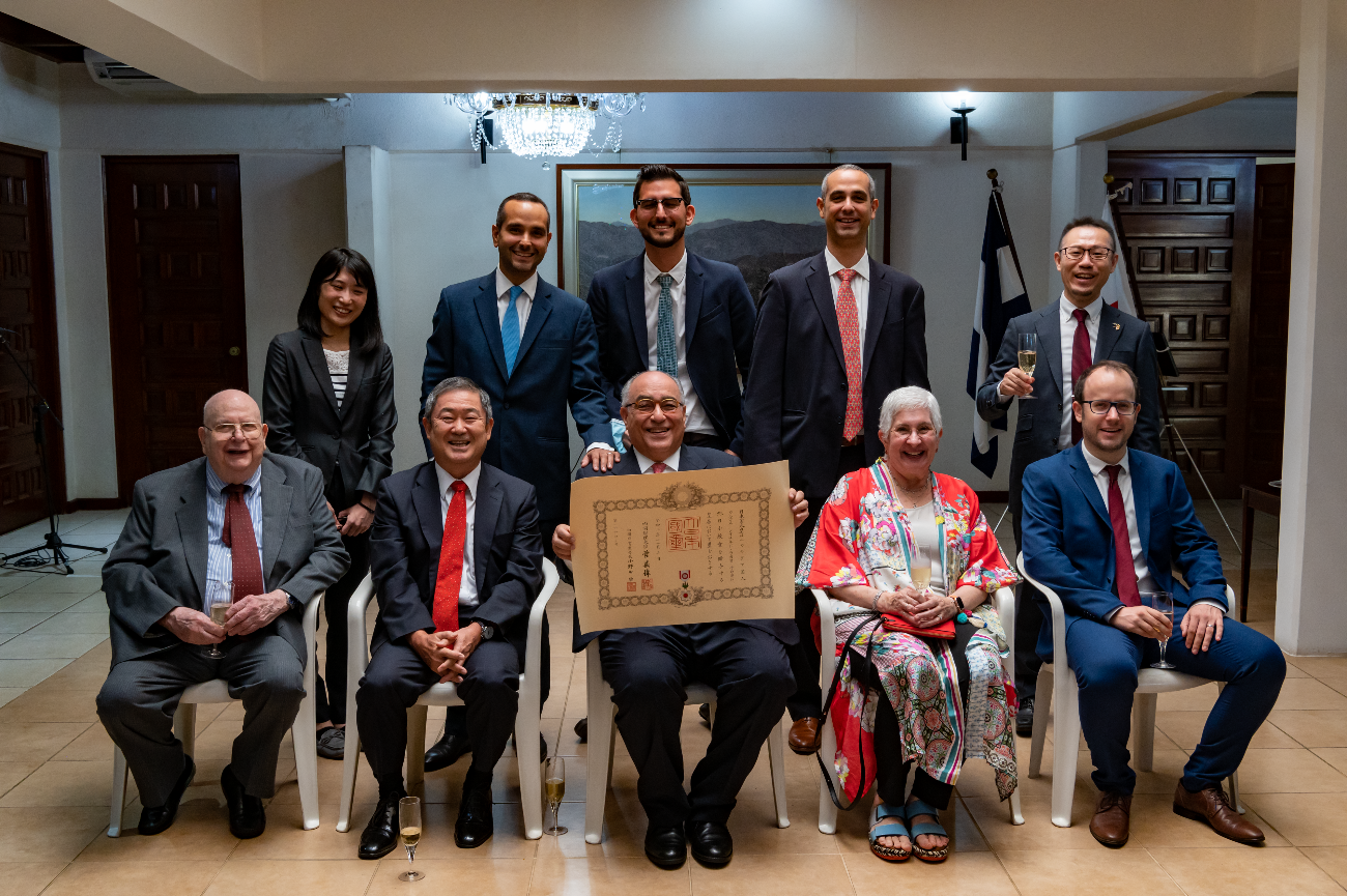 Por lo tanto, el Gobierno de Japón otorgó la “Orden del Sol Naciente, Rayos de Oro con Roseta”, por su destacada contribución al fortalecimiento de las relaciones económicas entre Nicaragua y Japón.
